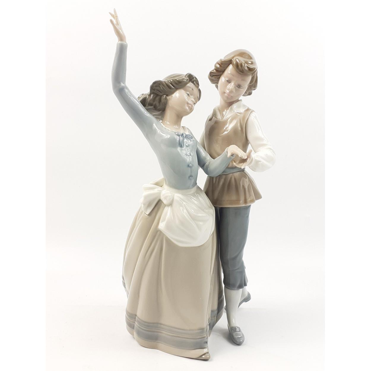 A large LLADRO Folk Dancing figurine of 2 young dancers model 5256, copyright 1984. Stands 31cm high. One finger has been broken, repaired.