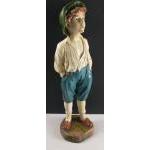 An ART DECO chalkware whistling boy statue, stands approx 60cm tall. Small chip from one toe but generally good condition