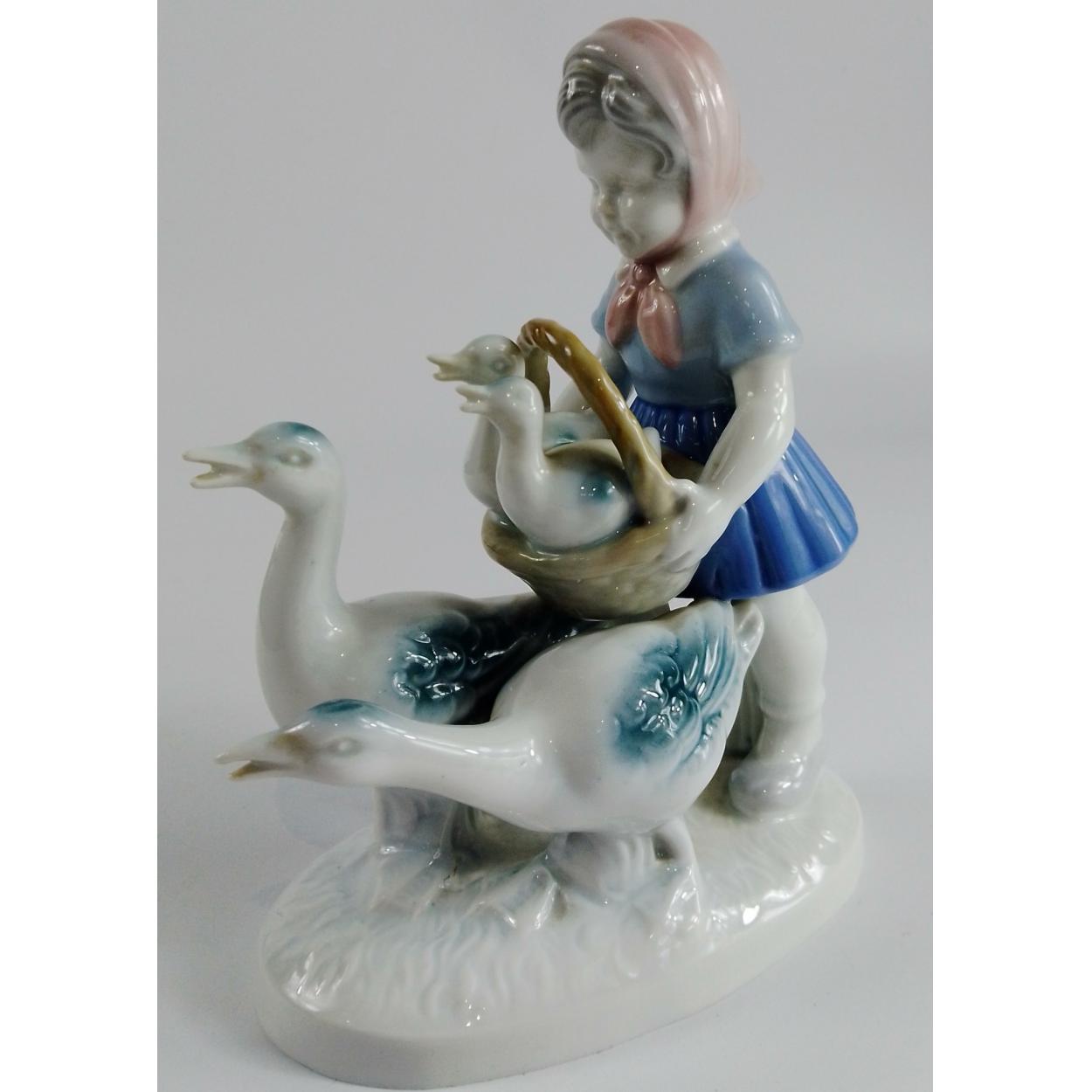 A GEROLD PORCELLAN figure group of girl with geese, stamped and made in Western Germany 16cm high. No damage