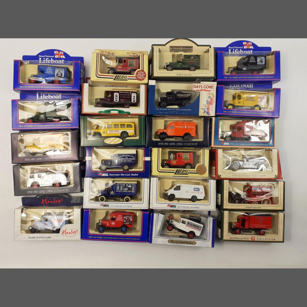 A box of modern collectors die cast models to include Lledo and others. 23 diecast in total. All boxed and in excellent condition.