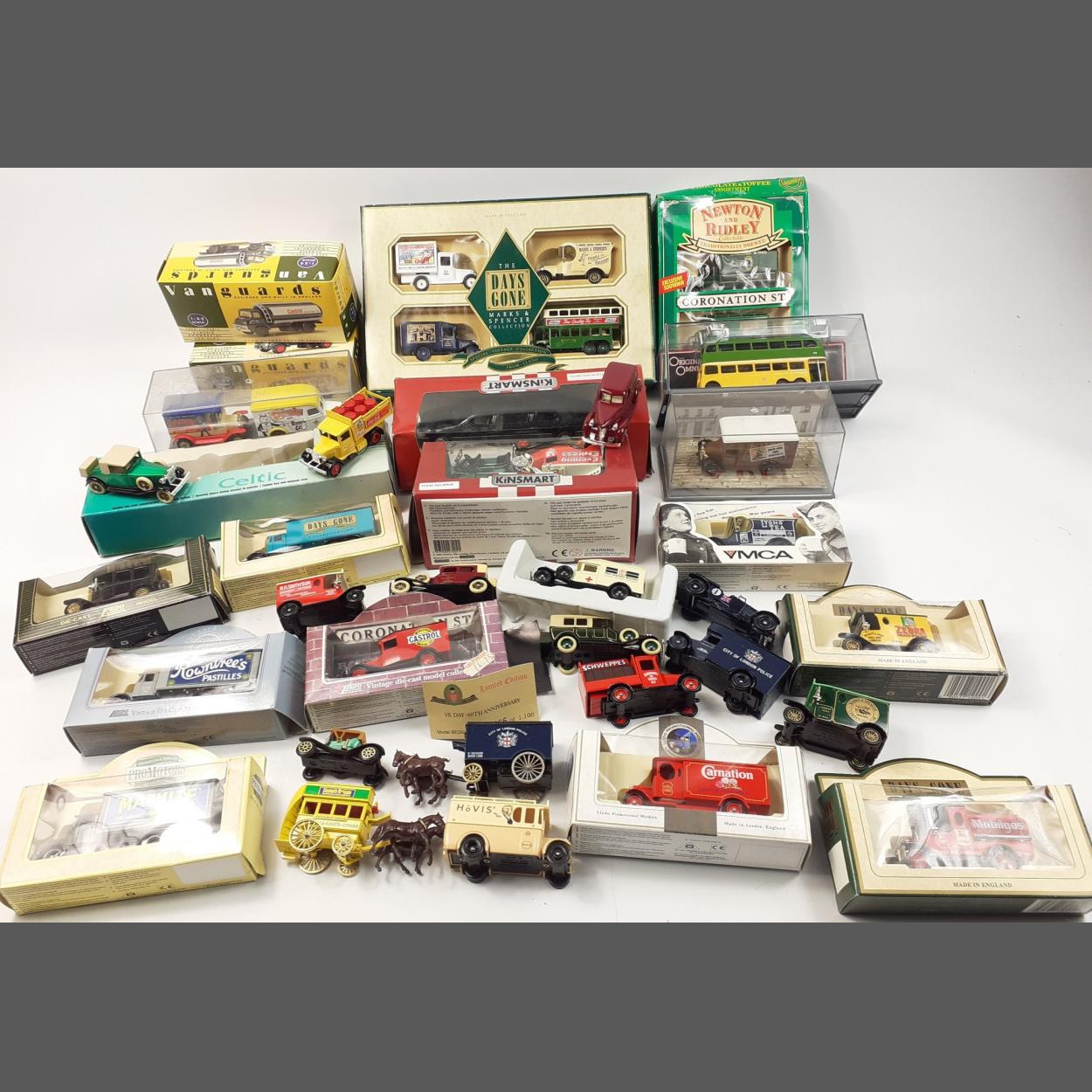 A nice quantity of boxed and some loose die cast models to include CORGI, KINSMART, VANGUARDS, LLEDO and others.