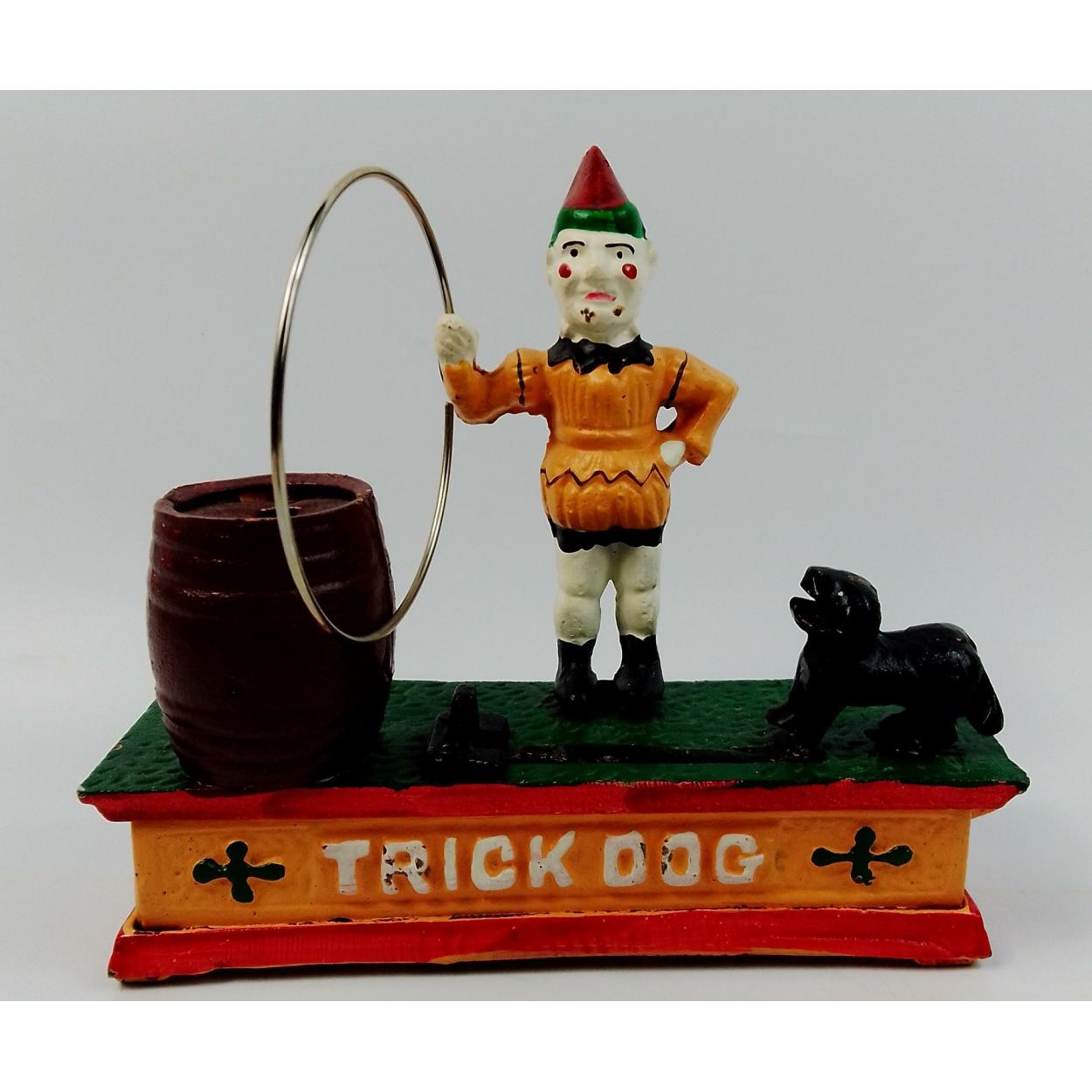 A vintage reproduction cast TRICK DOG savings bank in very good condition, 20x17cm approx