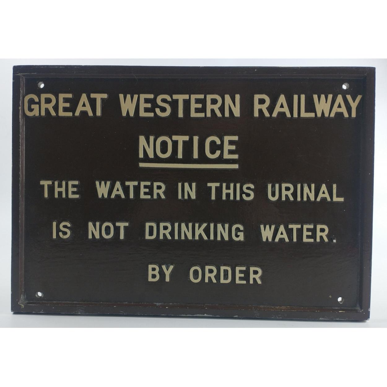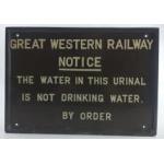 RAILWAY INTEREST! A VINTAGE GREAT WESTERN RAILWAY Notice sign ' The Water In This Urinal is not Drinking Water. - By Order! - sign possibly aluminium with 4 screw holes - dimensions 15" x 11" approx