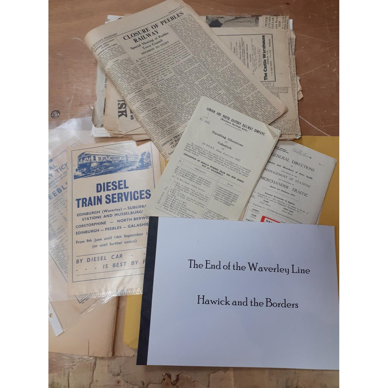 PEEBLES RAILWAY Ephemera. A great little lot of contemporary newspaper reports about the closure of the PEEBLES railway. Fascinating reading and a super little archive that includes an orginal 1958 Timetable with great graphics.