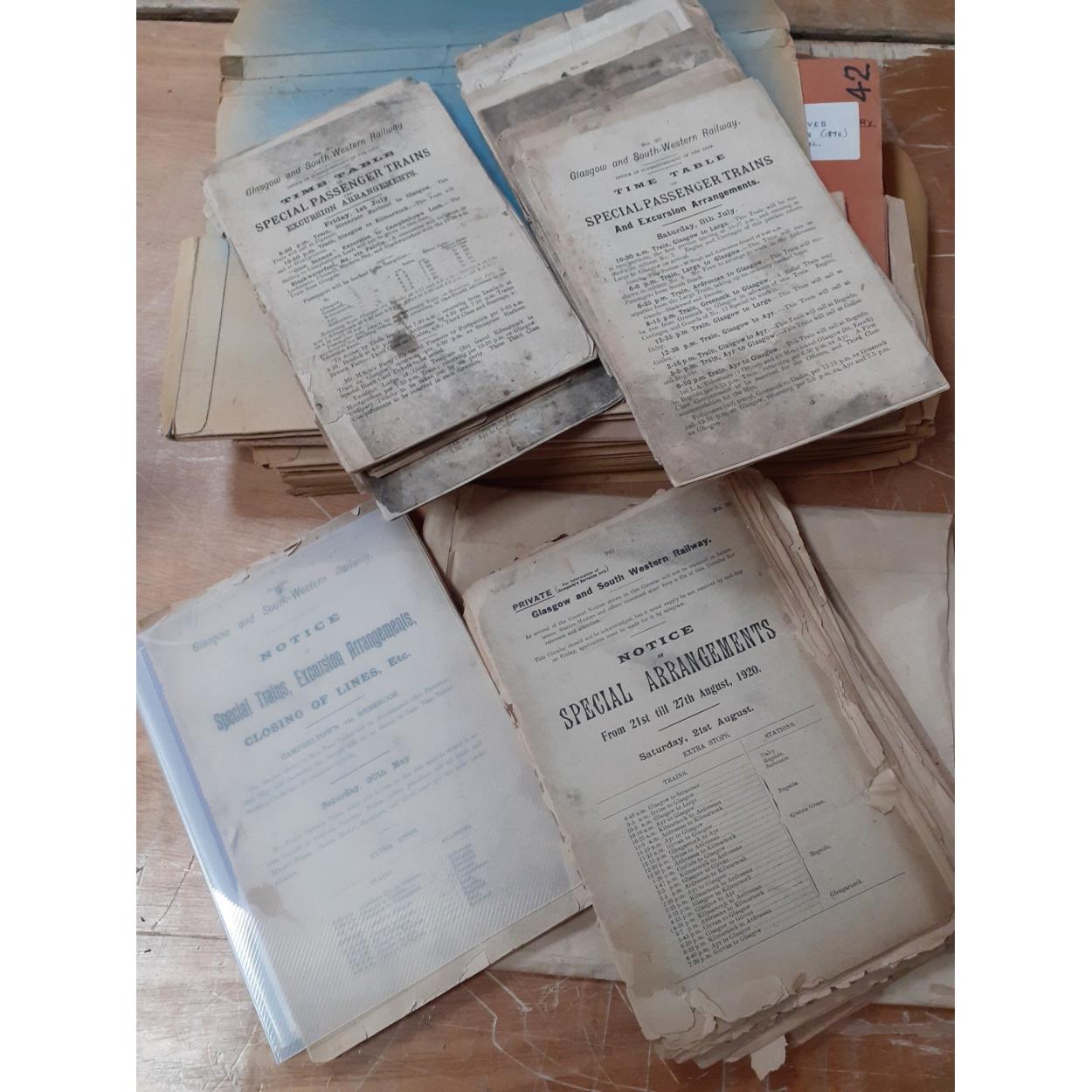 GLASGOW & SOUTH WESTERN RAILWAY G&S.W.R. RAILWAY INTEREST. A great lot of original flyers and booklets detailing special trains, special arrangement trains, Directors run trains and Special excursions dating back to the early 1900s. A fascinating lot. Note these documents are over 100 years old so require careful handling as they are fragile.