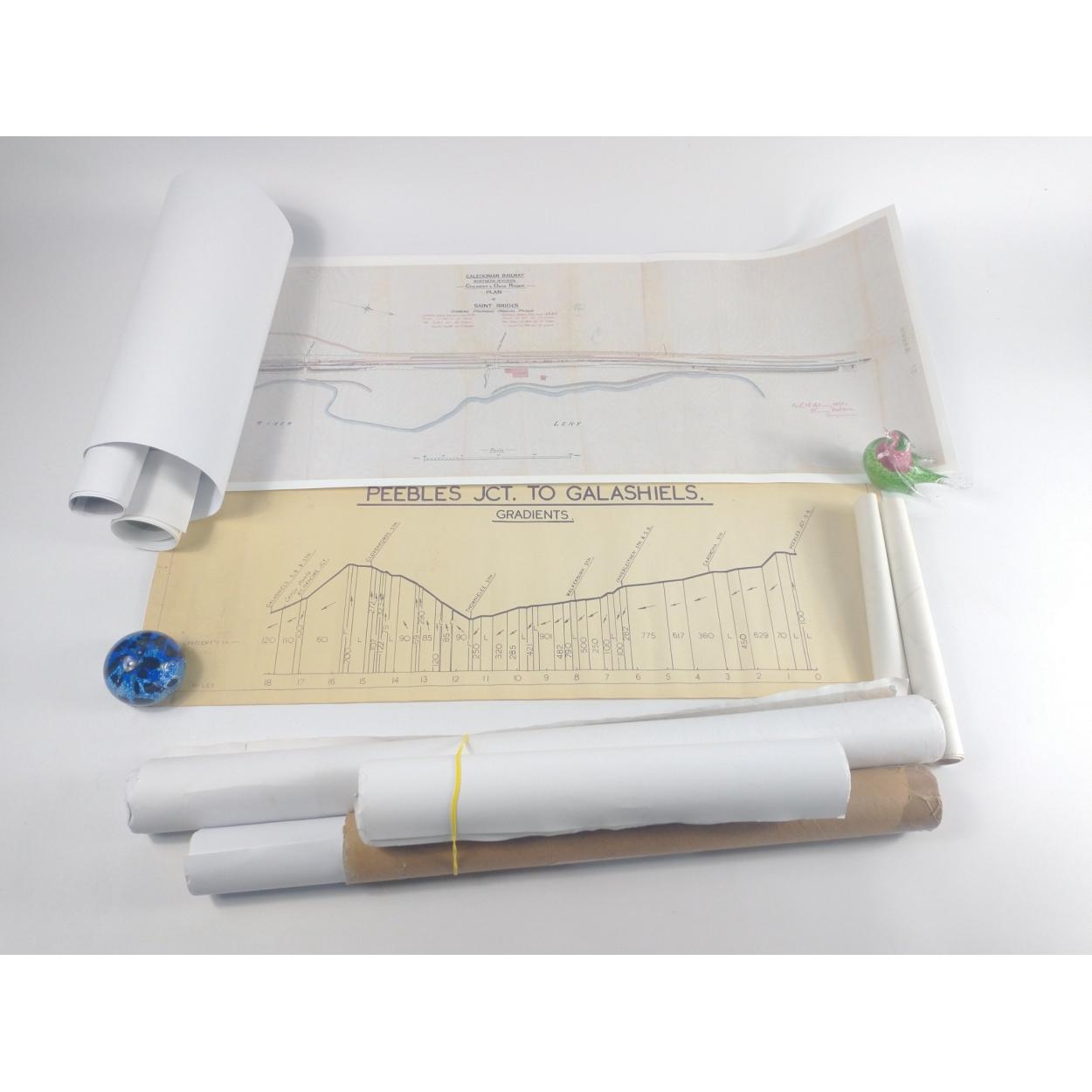 A great lot of rolled older reprints of station signalling diagrams to include some of Peebles interest line gradients etc. Lots of interesting stuff.