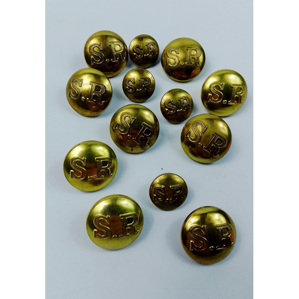 SOUTHERN RAILWAY S.R. stamped brass uniform buttons. Nine large and four small brass buttons by Firmin.