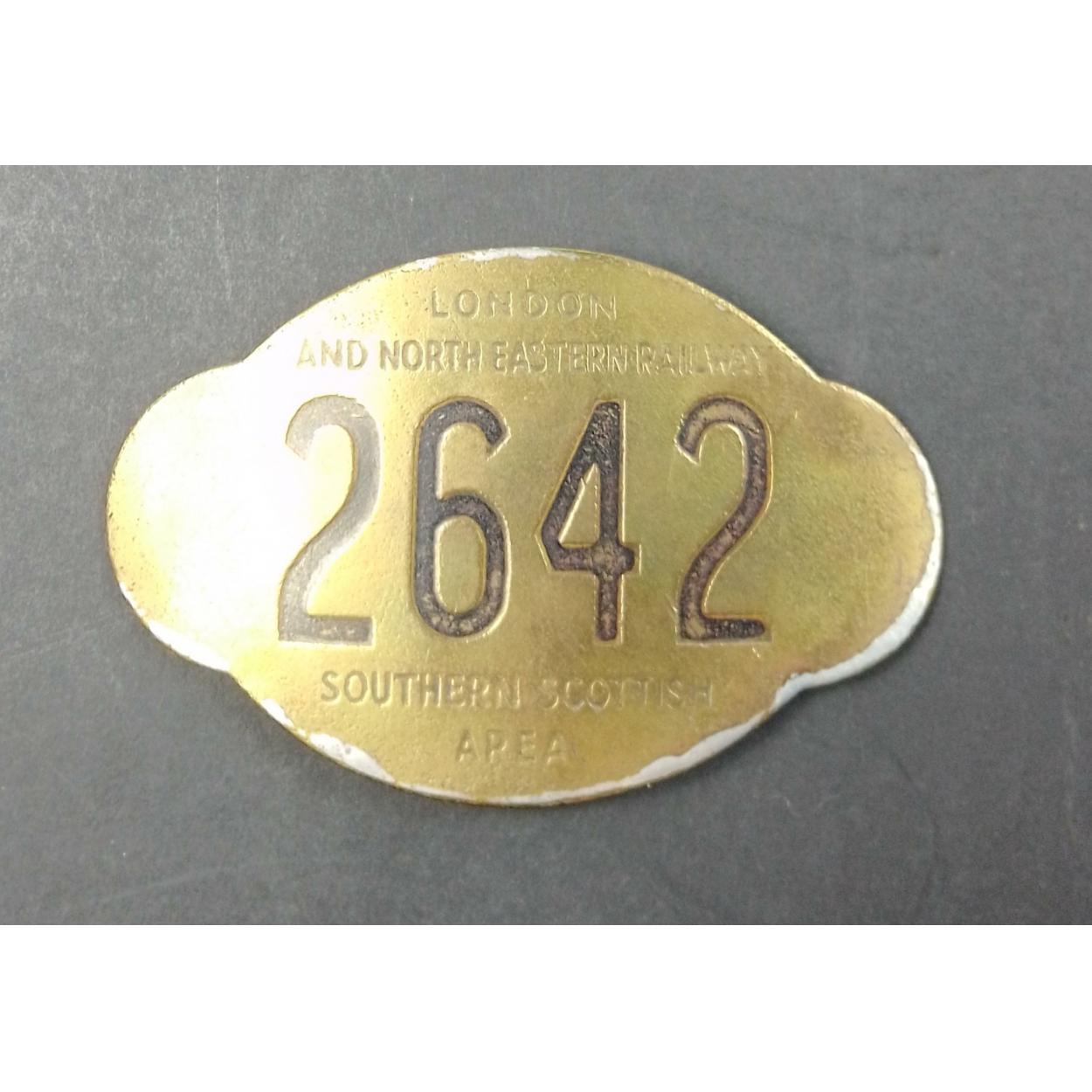 L.N.E.R. London and North Eastern Railway Southern Scottish Area brass cloverleaf brass plaque badge of unknown use. Marked with 2642. An interesting piece of Railwayana.