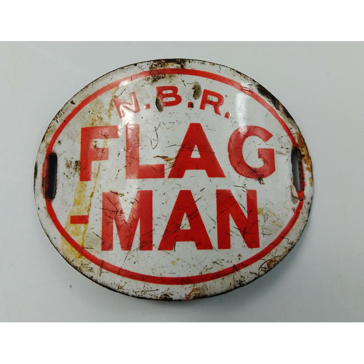 A rare piece of RAILWAY memorabilia. A N.B.R. FLAG MAN metal and enamel arm badge. Super red and white enamel in good order with marks from use.