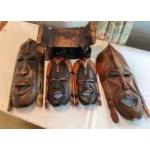 VINTAGE! A collection of 4 ebony TRIBAL WALL MASKS etc tallest mask height 40cm approx