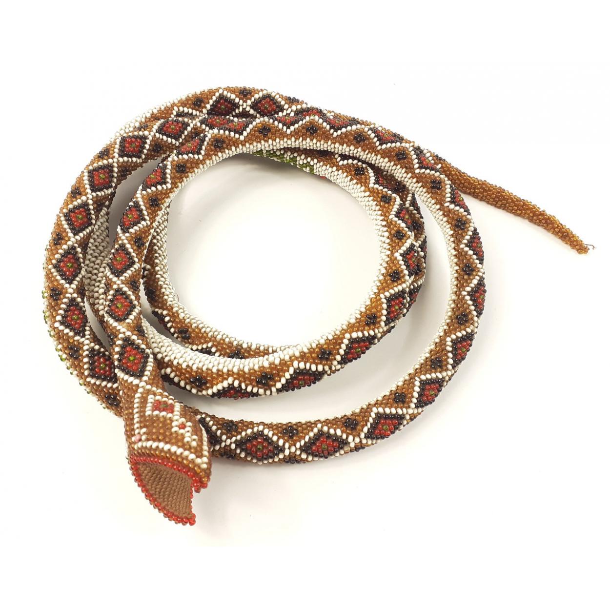 QUITE AMAZING! An antique beadwork snake with vibrant colours with an inscription '1917 Turkish prisoner' 208cm long. Slightly fragile in places as is to be expected.