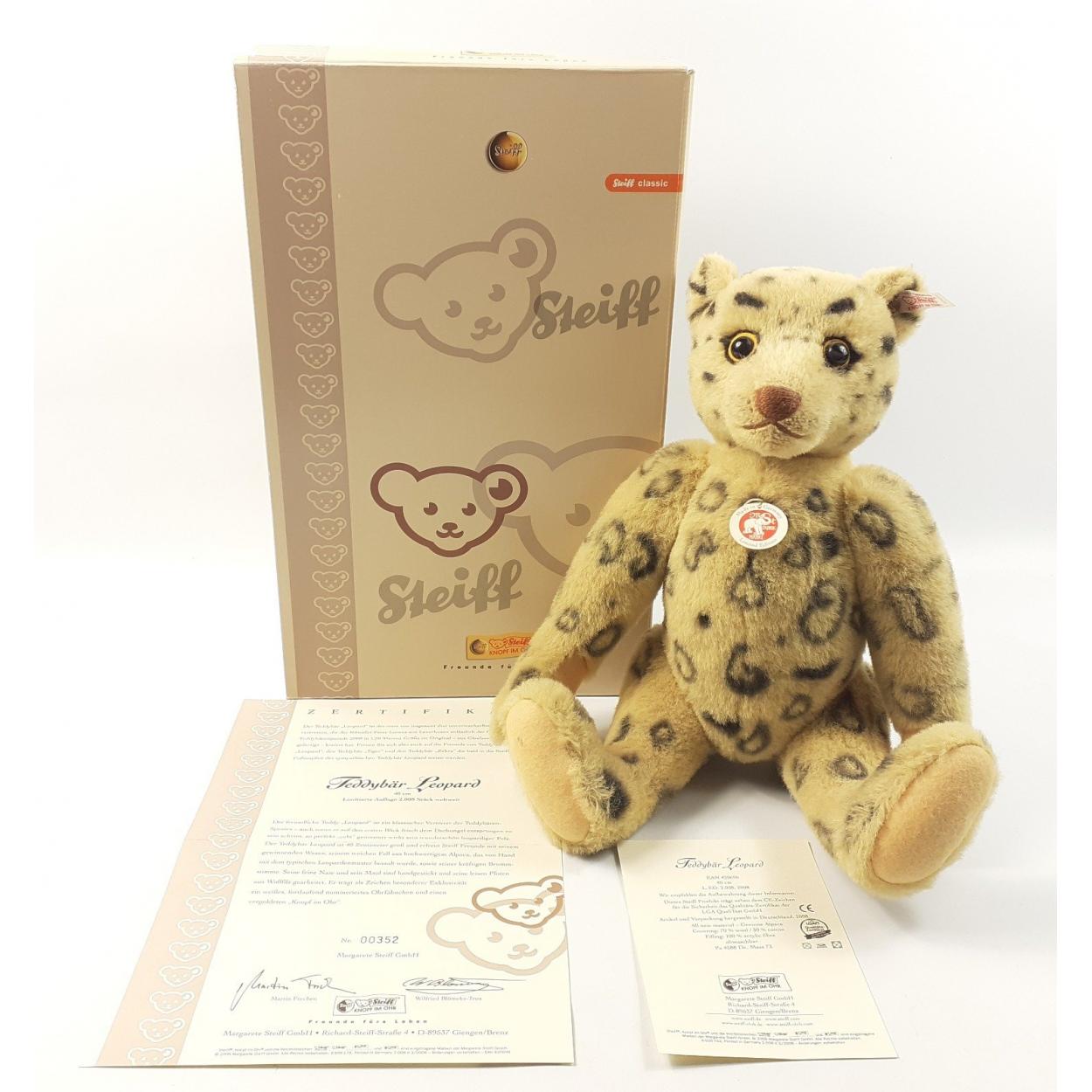 A STEIFF Alpaca leopard growler bear, reference 420696, stands 40cm tall with alpaca fur from a limited edition of 2008 with certificate number 00352,