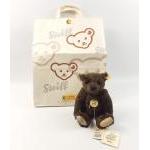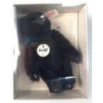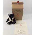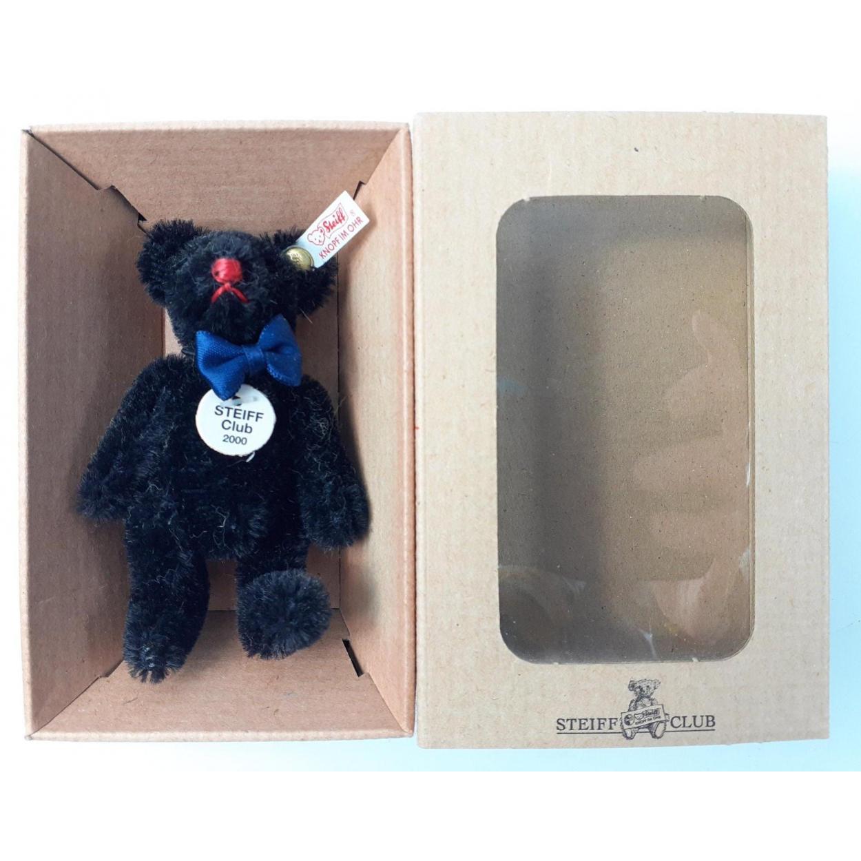 A STEIFF CLUB 2000 black teddy bear in its box, stands 7cm high with certificate