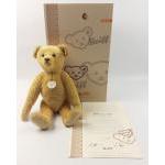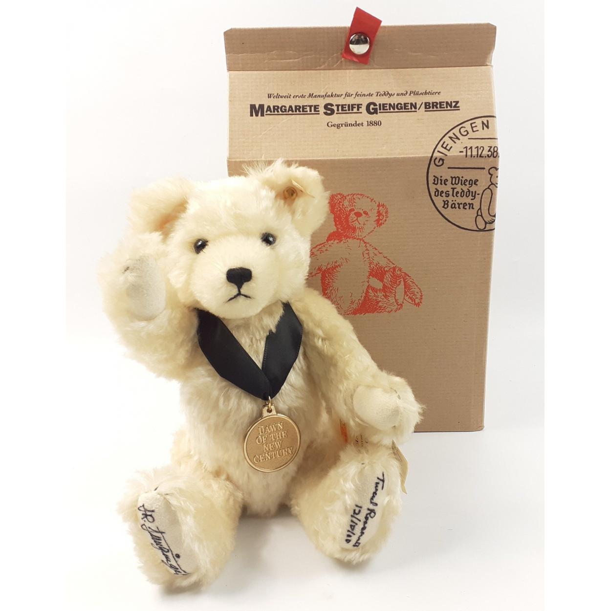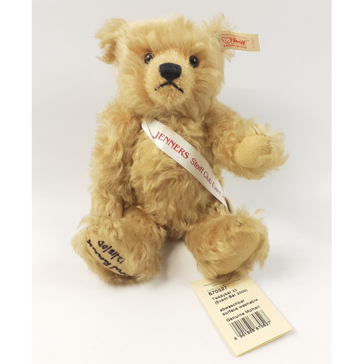 A STEIFF JENNERS limited edition 2000, with unclear signature, dated 12/10/00, reference 670527, stands 22cm high, with mohair fur, sash and labels