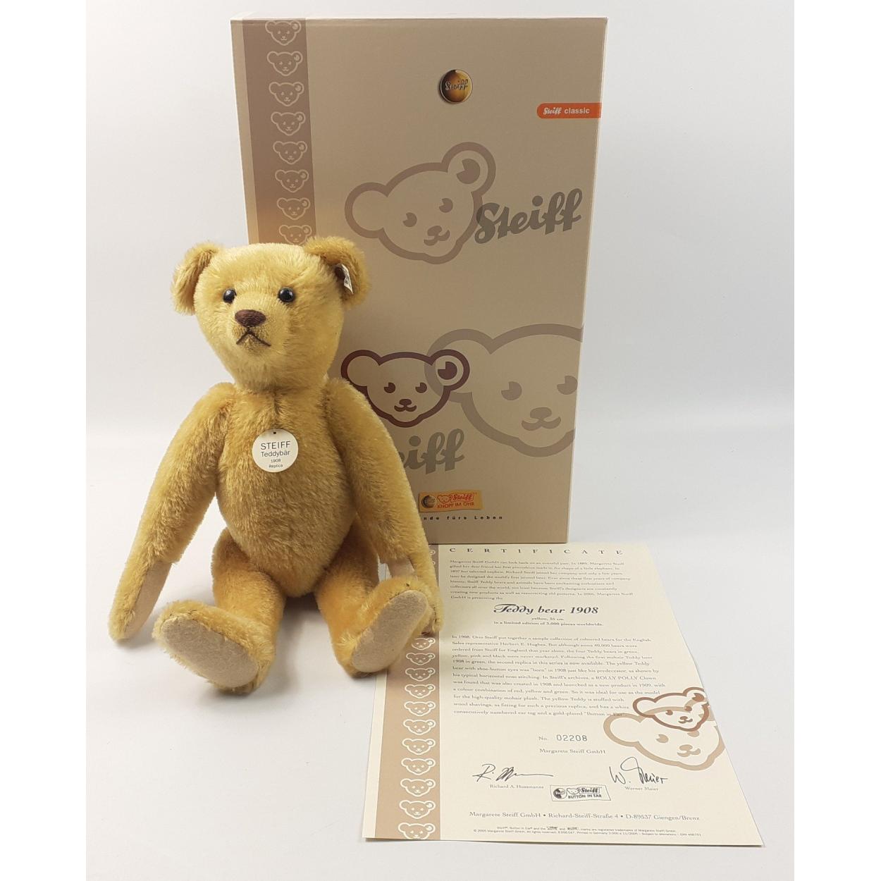 A new STEIFF 1908 replica yellow bear, reference 406751, standing 35cm high, certificate number 02208 of a limited edition of 3000, boxed