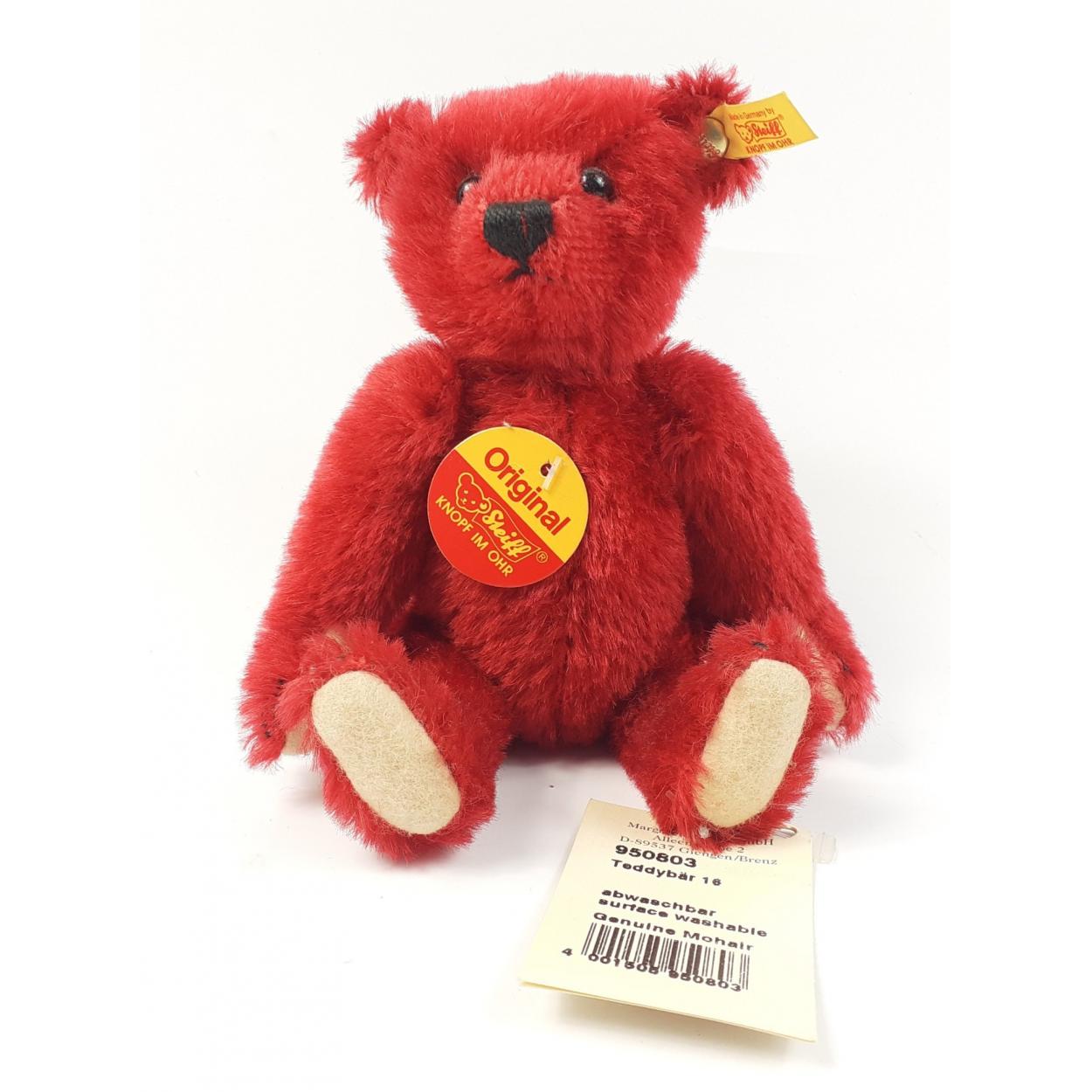 A STEIFF original red teddy, reference 950803, stands 16cm high, with labels, no box