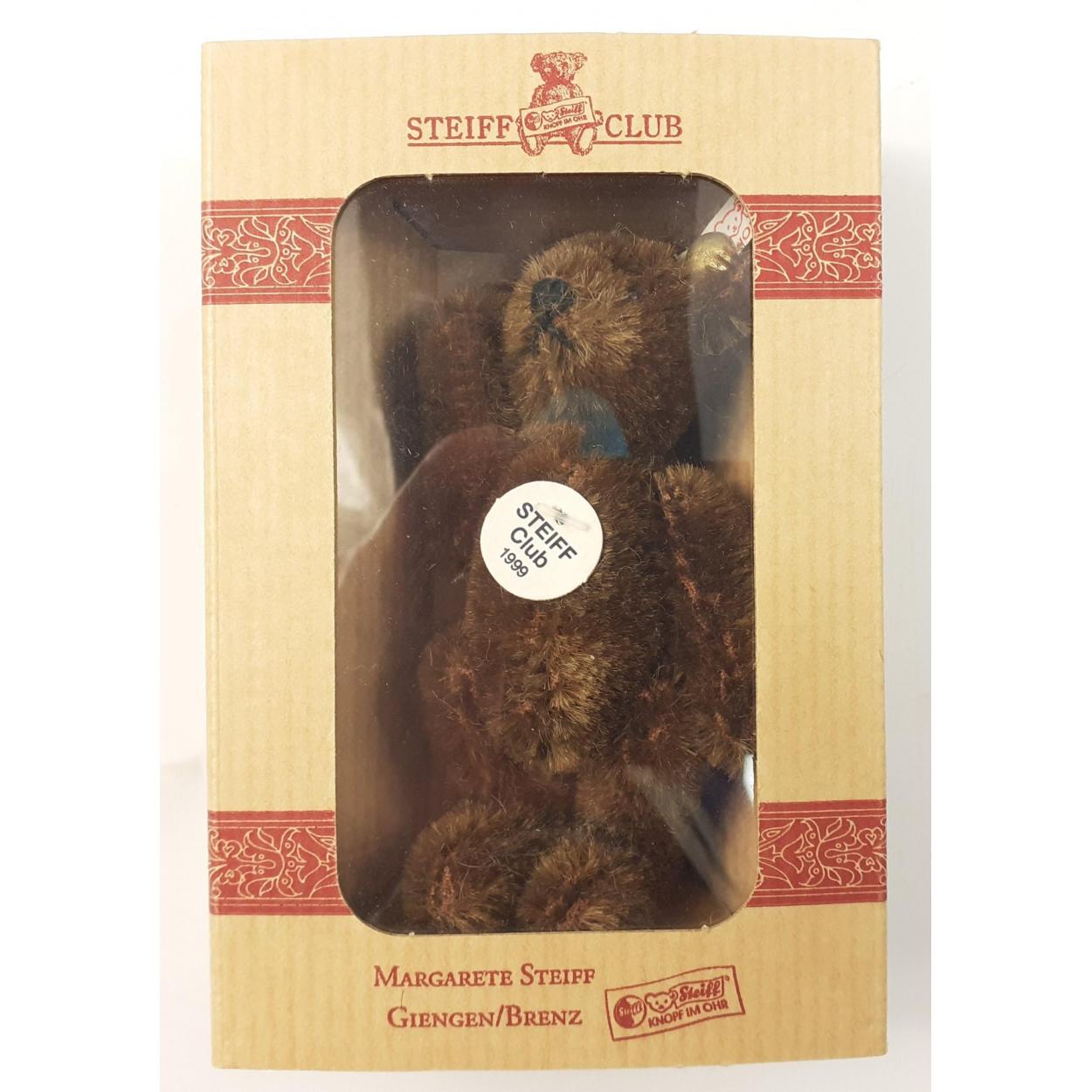 A STEIFF CLUB 1999 brown teddy bear in its box, stands 7cm high with certificate