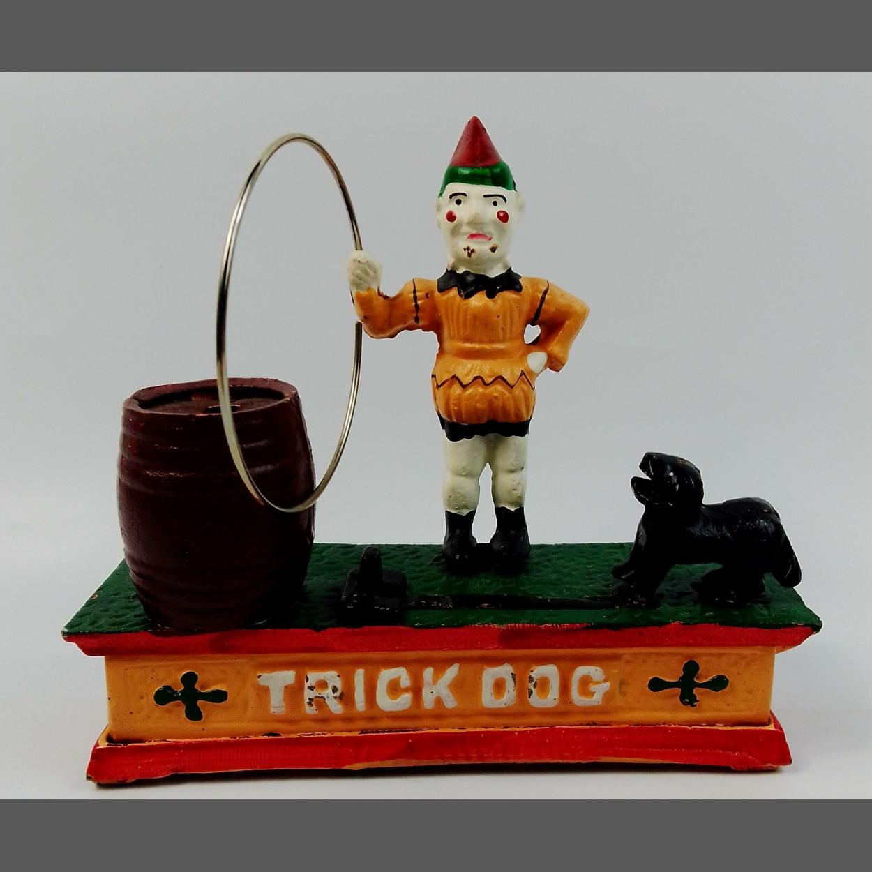 A vintage reproduction cast TRICK DOG savings bank in very good condition, 20x17cm approx