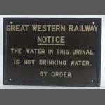 RAILWAY INTEREST! A VINTAGE GREAT WESTERN RAILWAY Notice sign ' The Water In This Urinal is not Drinking Water. - By Order! - sign possibly aluminium with 4 screw holes - dimensions 15" x 11" approx