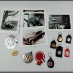 A great collection of MG keyrings and car badges. Includes an AA badge and others. Includes a large quanity of reprinted photots of MG interest