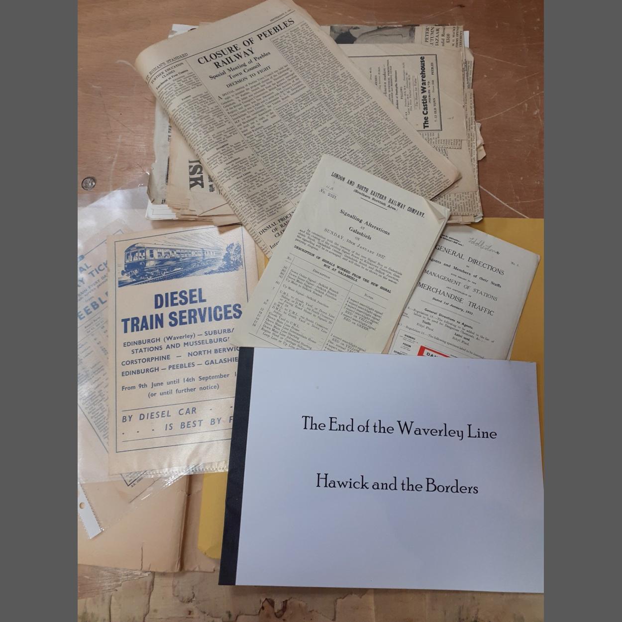 PEEBLES RAILWAY Ephemera. A great little lot of contemporary newspaper reports about the closure of the PEEBLES railway. Fascinating reading and a super little archive that includes an orginal 1958 Timetable with great graphics.