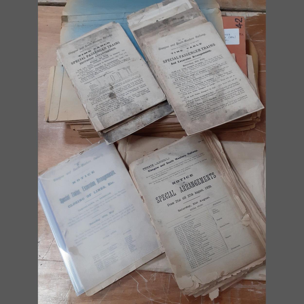 GLASGOW & SOUTH WESTERN RAILWAY G&S.W.R. RAILWAY INTEREST. A great lot of original flyers and booklets detailing special trains, special arrangement trains, Directors run trains and Special excursions dating back to the early 1900s. A fascinating lot. Note these documents are over 100 years old so require careful handling as they are fragile.