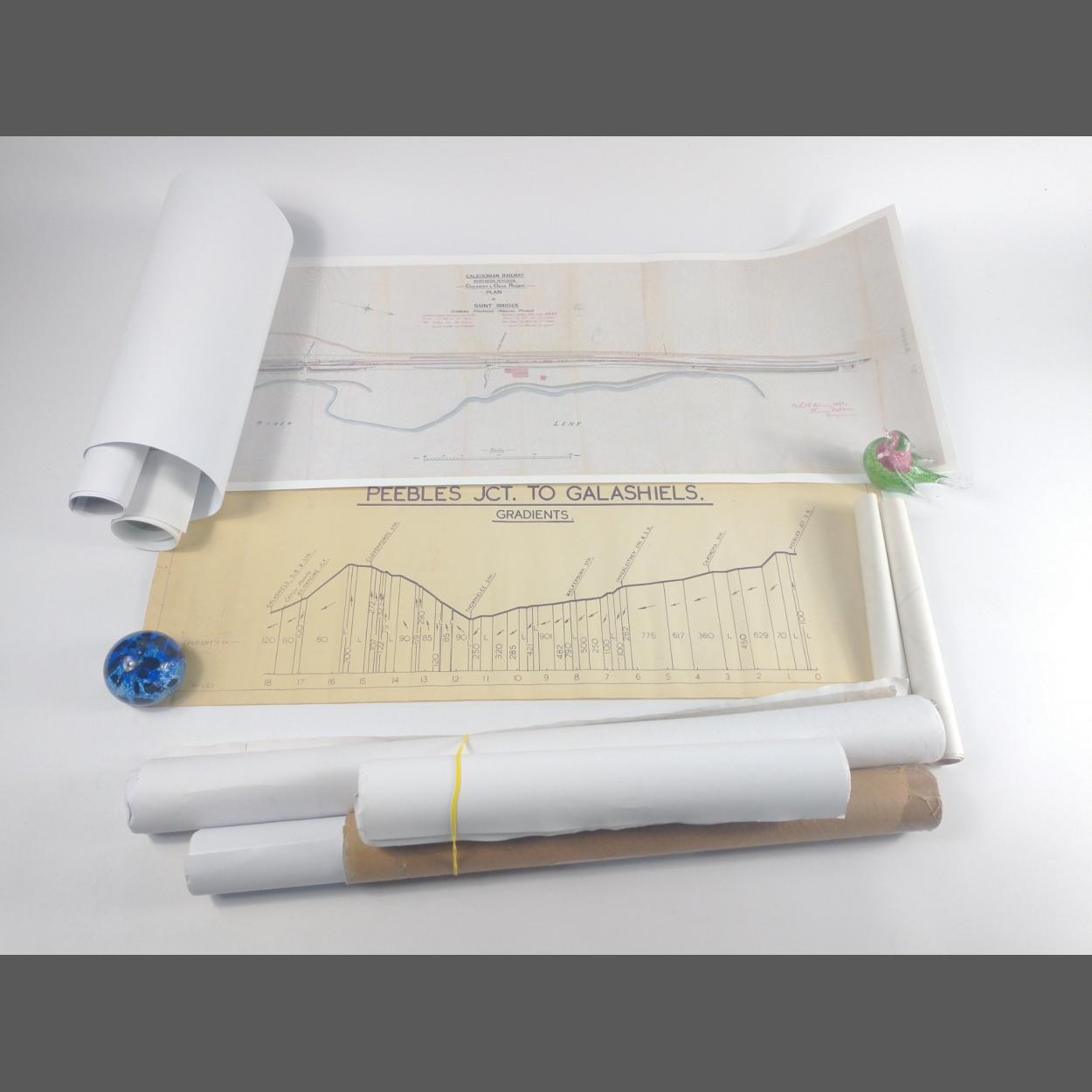 A great lot of rolled older reprints of station signalling diagrams to include some of Peebles interest line gradients etc. Lots of interesting stuff.