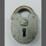 RAILWAY MEMORABILIA. A wonderful old heavily used NBR stamped padlock that has seen much service and bears the scars and prepaint to show it. Missing key and with broken lock cover but still a great old thing! Comes with an Intercity stamped British Rail dishcloth.