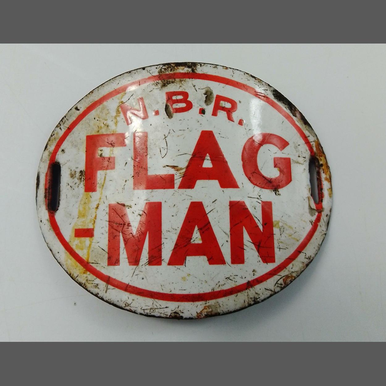A rare piece of RAILWAY memorabilia. A N.B.R. FLAG MAN metal and enamel arm badge. Super red and white enamel in good order with marks from use.