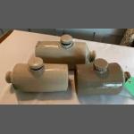 ANTIQUE! A TRIO of STONEWARE hot water pigs - the largest stamped (indistinct) maker BOVEN???? pottery