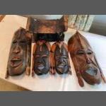 VINTAGE! A collection of 4 ebony TRIBAL WALL MASKS etc tallest mask height 40cm approx