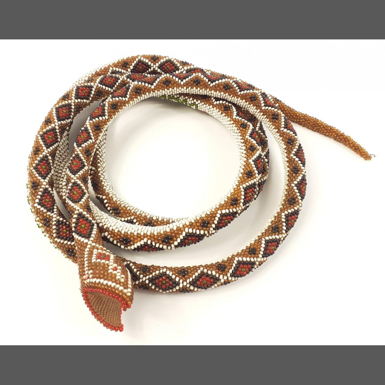 QUITE AMAZING! An antique beadwork snake with vibrant colours with an inscription '1917 Turkish prisoner' 208cm long. Slightly fragile in places as is to be expected.