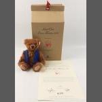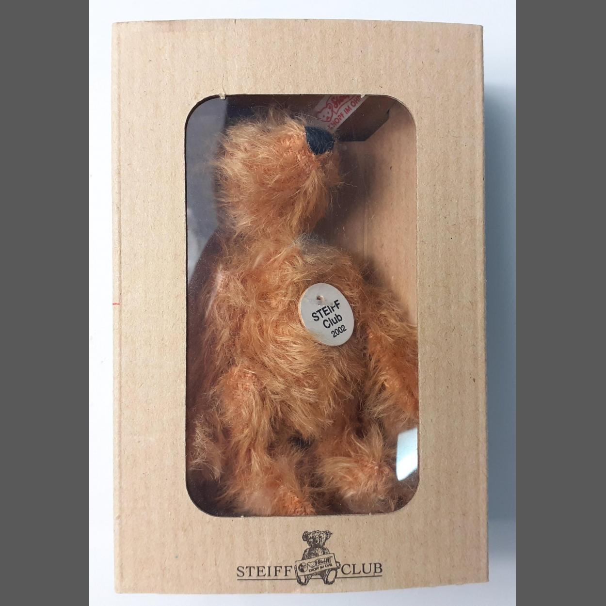 A STEIFF CLUB 2002 brown teddy bear in its box, stands 7cm high with certificate