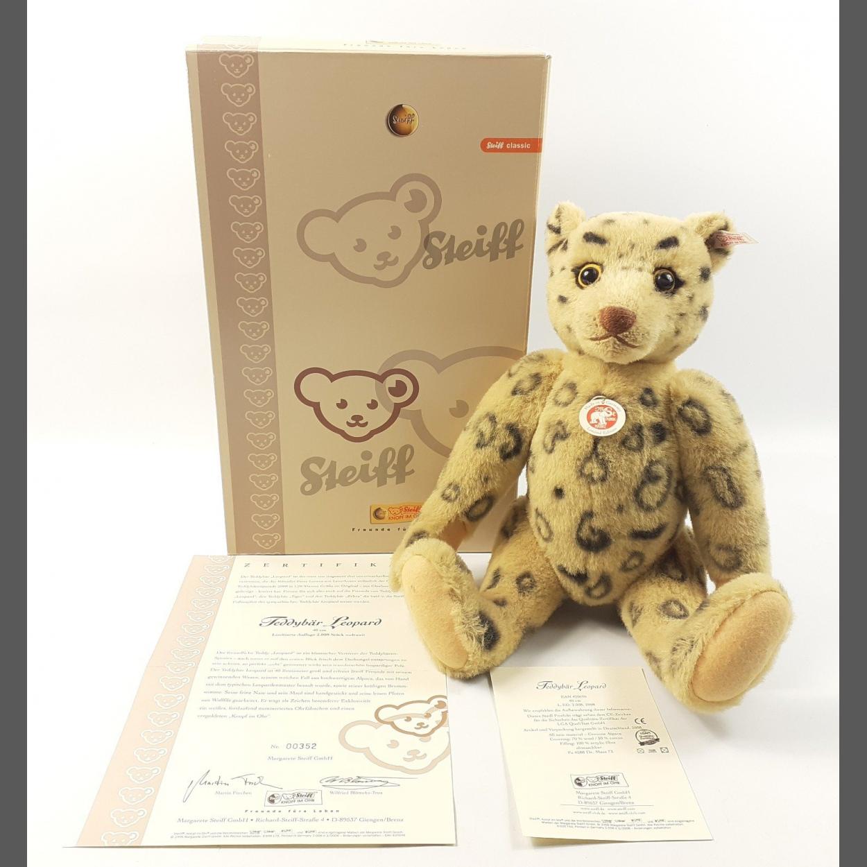 A STEIFF Alpaca leopard growler bear, reference 420696, stands 40cm tall with alpaca fur from a limited edition of 2008 with certificate number 00352,