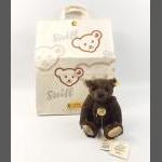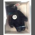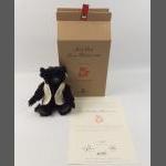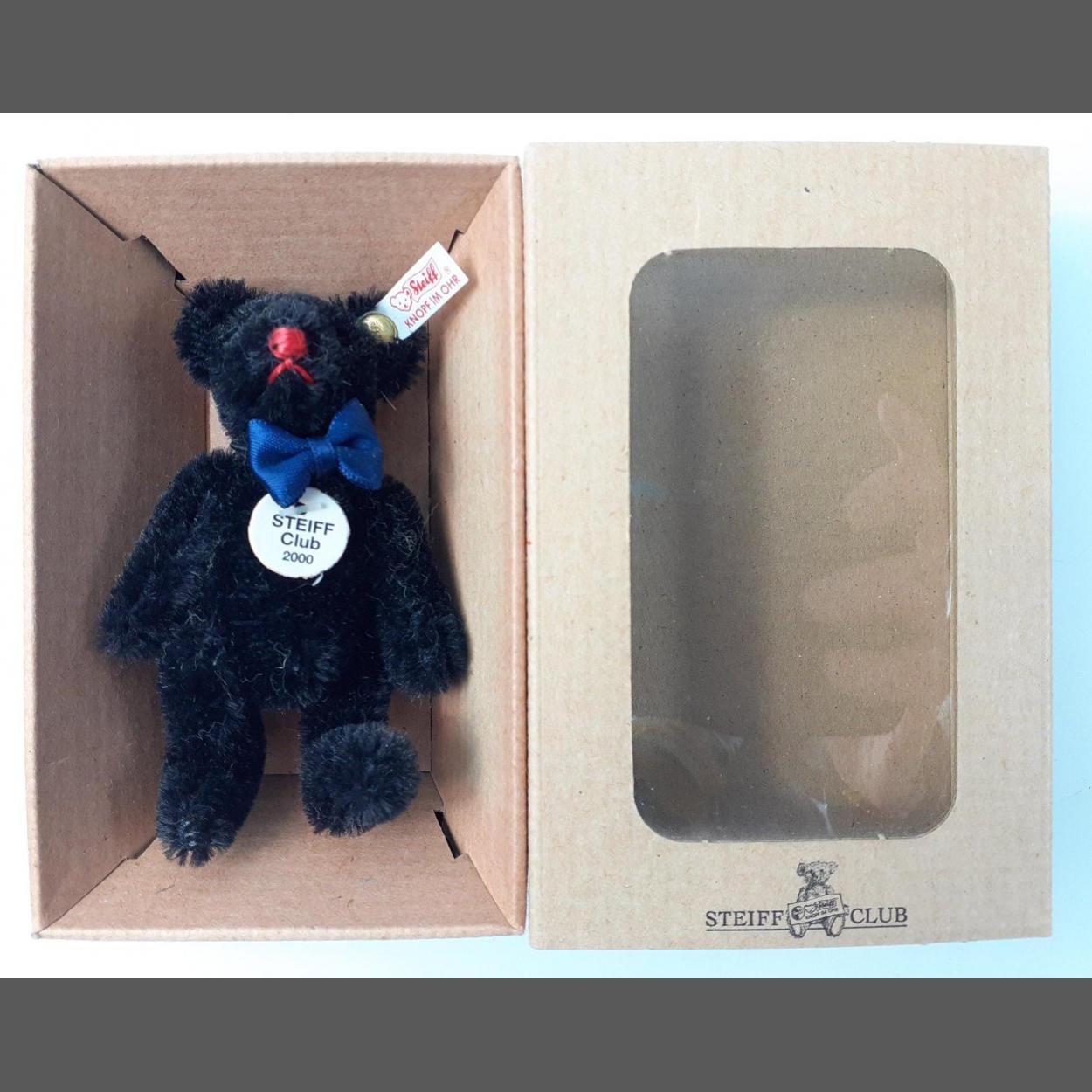 A STEIFF CLUB 2000 black teddy bear in its box, stands 7cm high with certificate