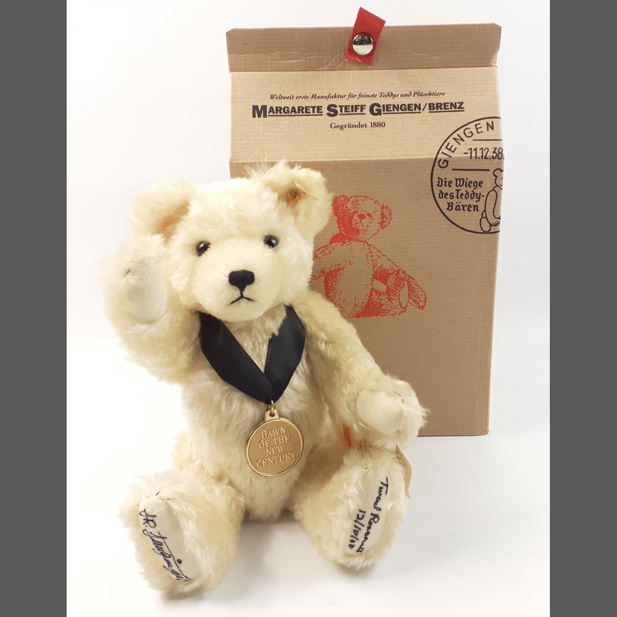 A STEIFF JENNERS limited edition 2000, with unclear signature, dated 12/10/00, reference 670527, stands 22cm high, with mohair fur, sash and labels