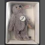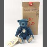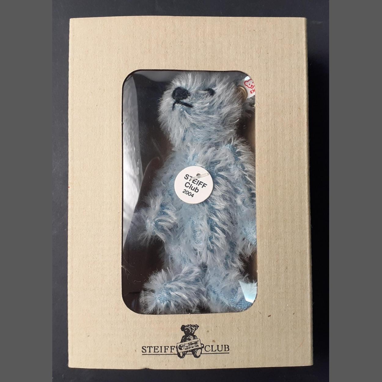 A STEIFF CLUB 2004 blue teddy bear in its box, stands 7cm high with certificate