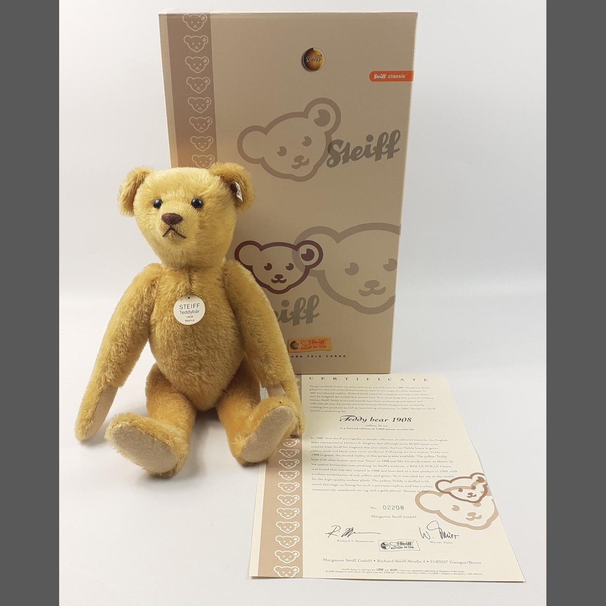 A new STEIFF 1908 replica yellow bear, reference 406751, standing 35cm high, certificate number 02208 of a limited edition of 3000, boxed