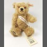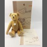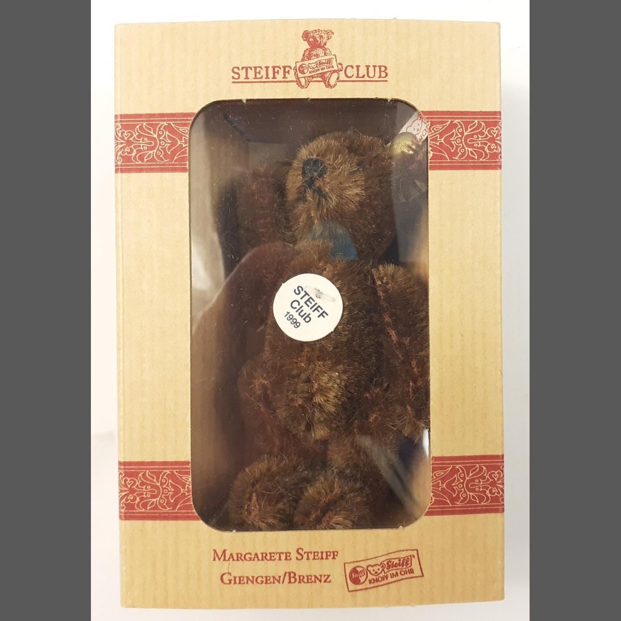 A STEIFF CLUB 1999 brown teddy bear in its box, stands 7cm high with certificate