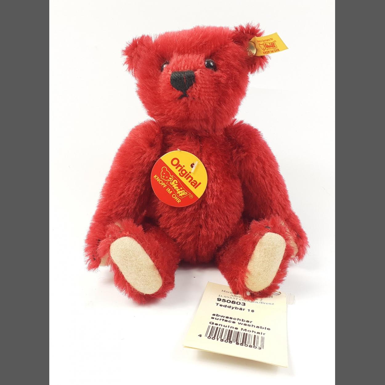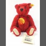 A STEIFF original red teddy, reference 950803, stands 16cm high, with labels, no box