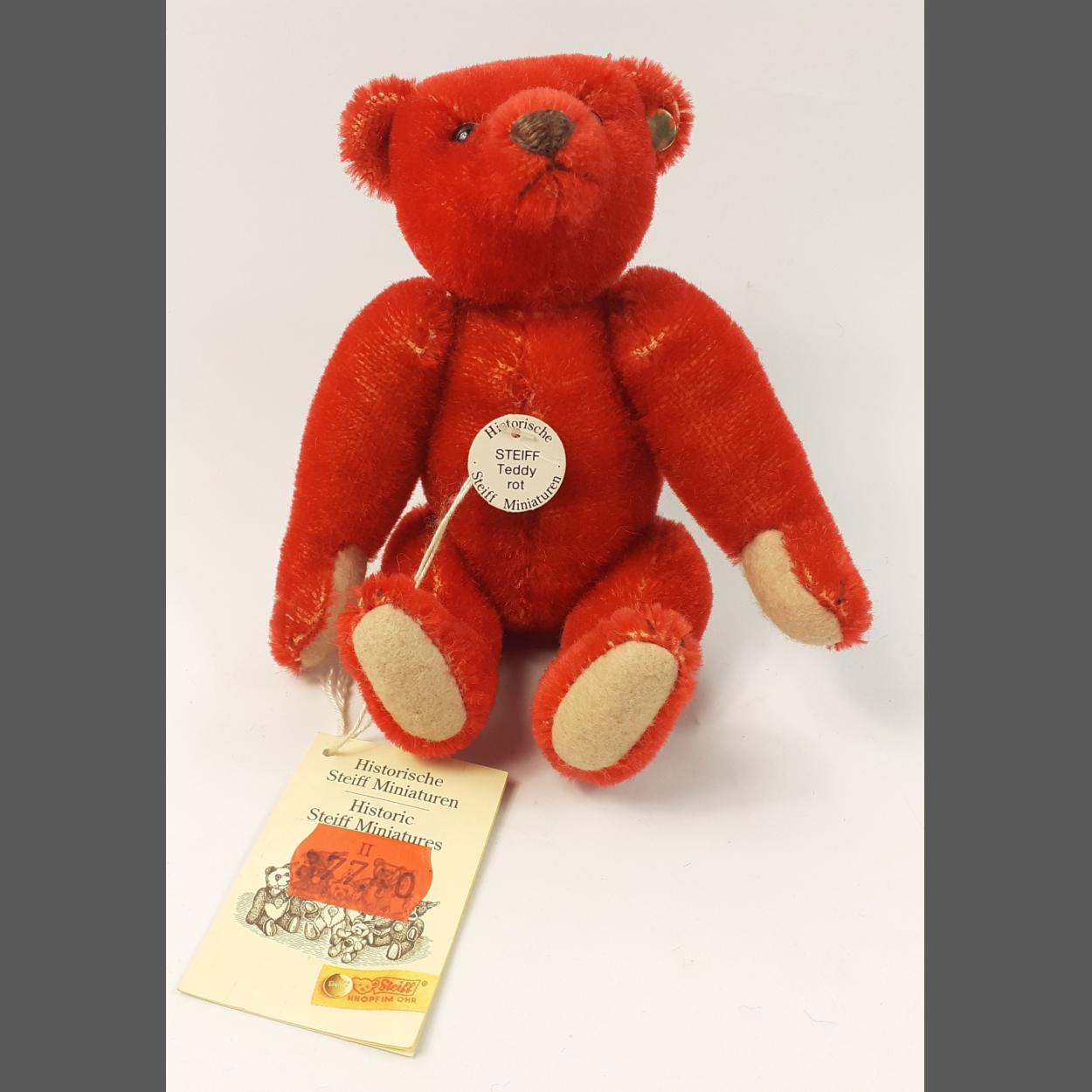 A STEIFF historic miniatures II 1908 red teddy bear, reference 029226, stands 16cm high, with labels