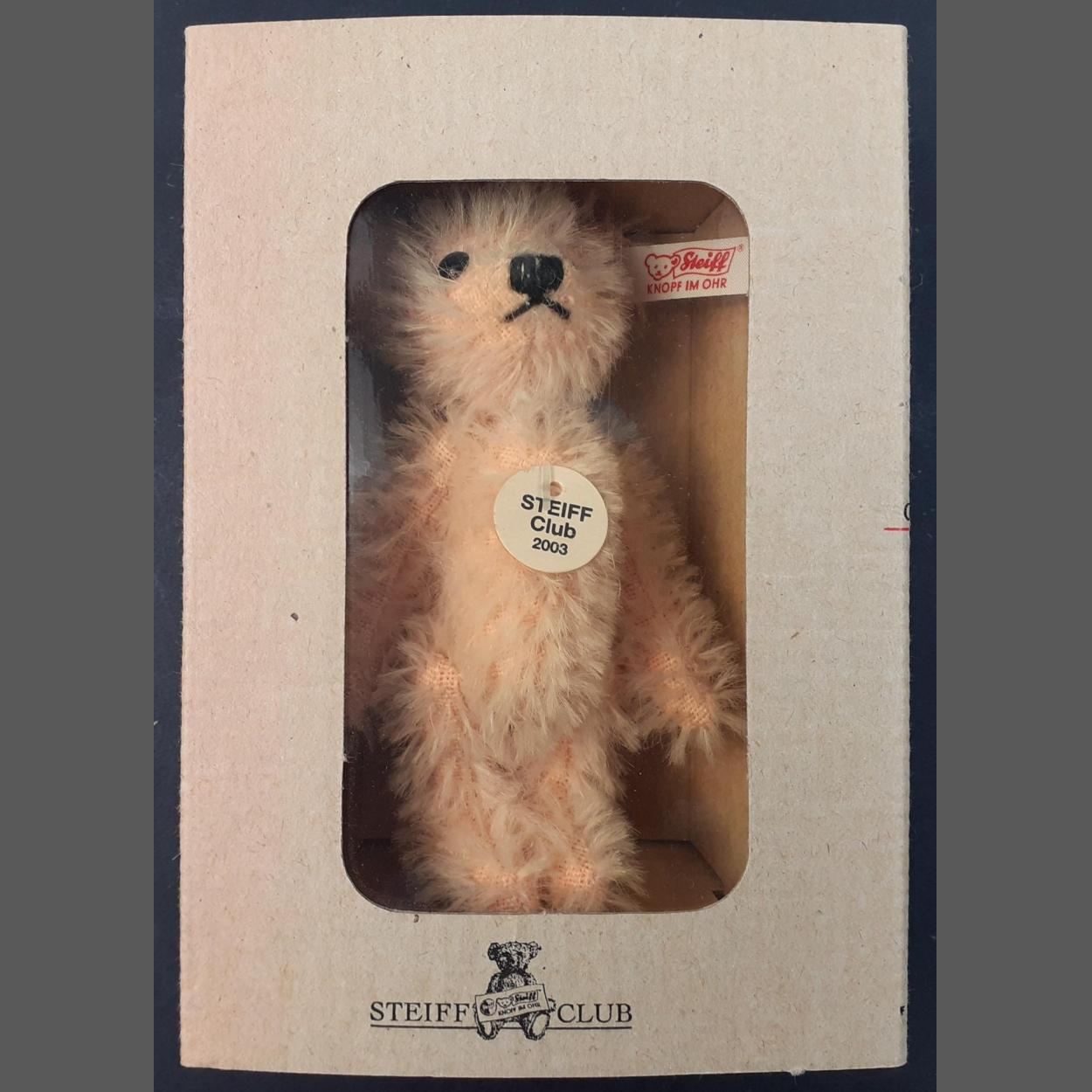 A STEIFF CLUB 2003 rose teddy bear in its box, stands 7cm high with certificate