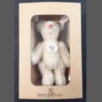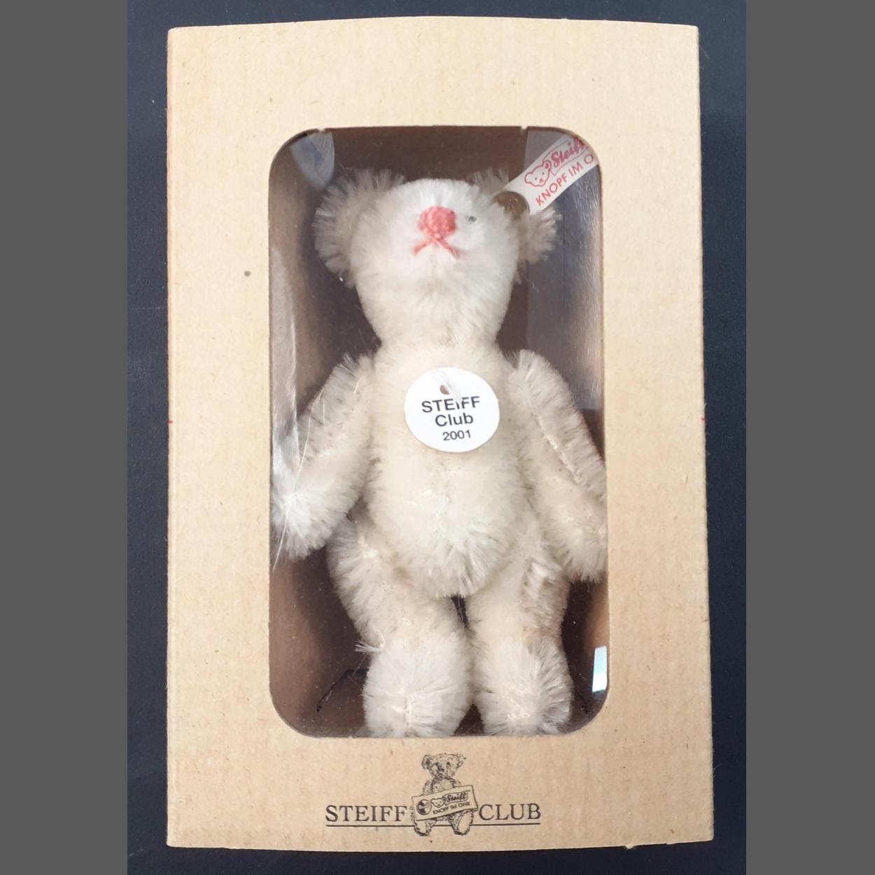 A STEIFF CLUB 2001 white teddy bear in its box, stands 7cm high with certificate