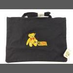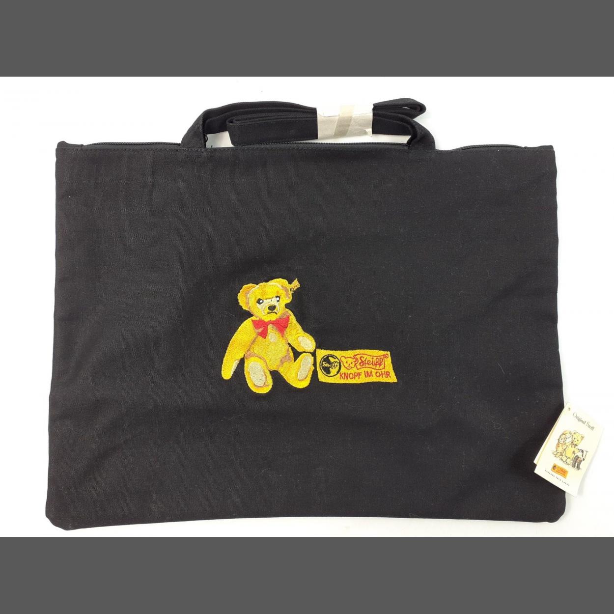 An unused black fabric briefcase style STEIFF bag reference number 601286, with embroidered teddy and logo on the front 47x35cm approx. With labels