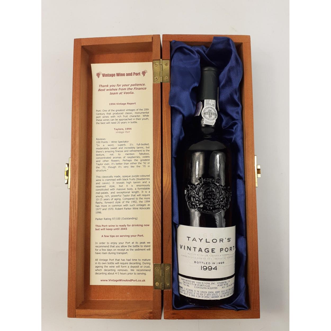 TAYLORS Vintage Port 1994 - bottled in 1996 - all seals intact - comes with original wooden presentation case 75cl - an excellent vintage!