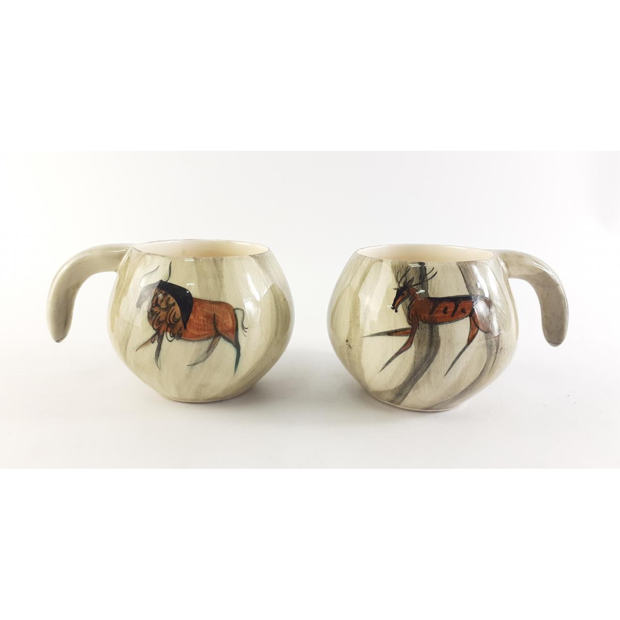COOL! - A pair of mugs with ancient wall art design, approx 8cm tall.