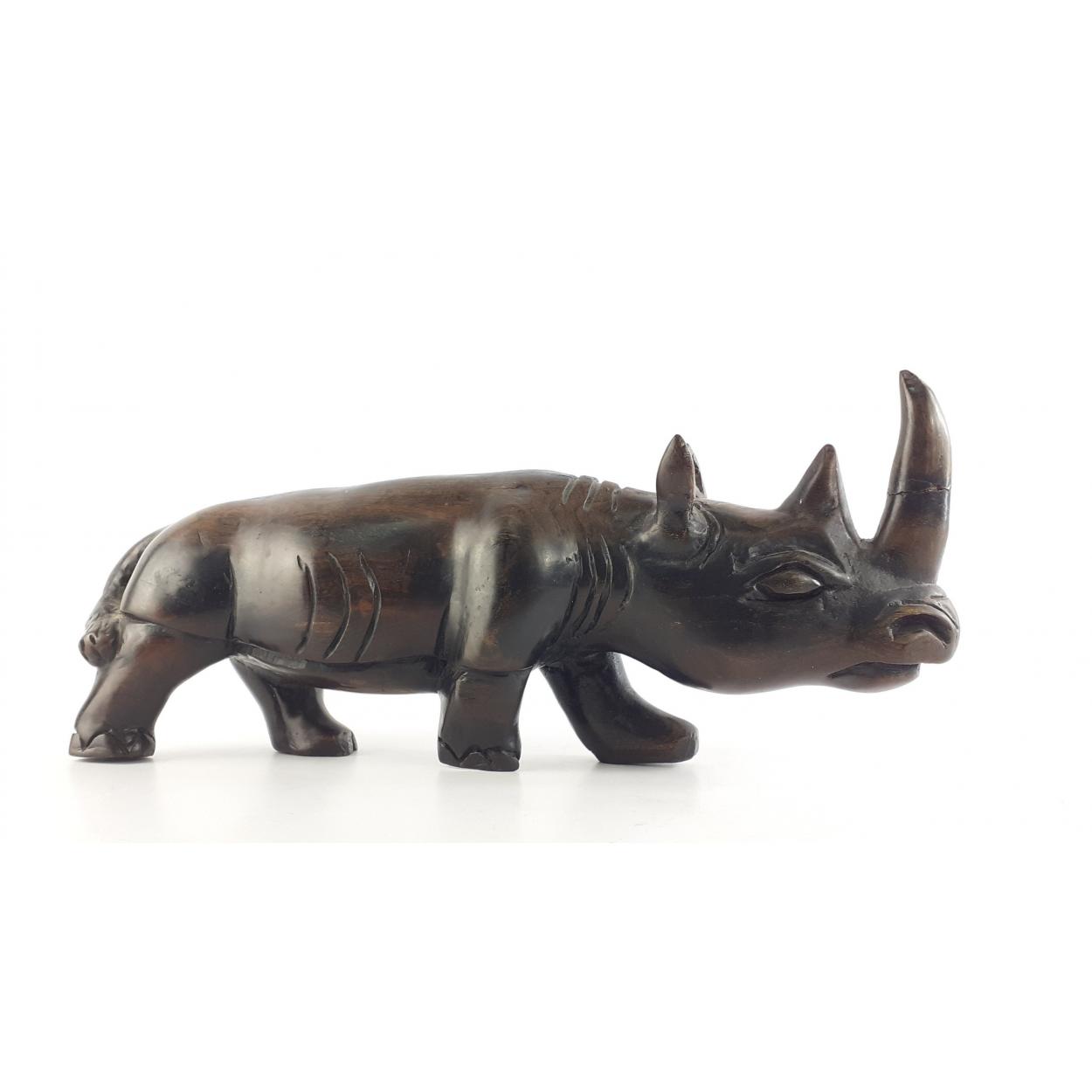 Hand carved wooden Kenya rhino 32cm long approx. Historical repair to horn