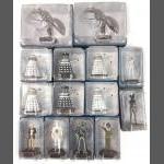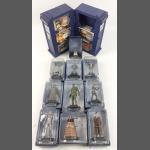 DOCTOR WHO - A Doctor Who TARDIS (24x13x14cm approx) with dozens of trading cards plus EAGLEMOSS die-cast figures including K-9, 1 (The Pandorica Opens), 2 (Davros), 3 (Cyber Controller), 4 (Weeping Angel), 6 (Silurian Warrior), 6 (Dalek), 7 (Sontaran General), 8 (School Reunion), 9 (Ice Warrior),