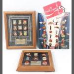 COCA-COLA - two framed collections of pins to include the second NOSTALGIA PIN SET (1920-1963) limited edition (1352/2500), the 'CALENDAR GIRLS' (1910-1928) limited edition (532/2500), and a cardboard display stand of 24 various pins