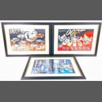 JAMES BOND - A framed poster of SPECTRE (frame size 55x45cm approx damage to one corner of frame), a DANIEL CRAIG collage from Casino Royale (36x31cm approx) and a framed ROYAL MAIL numbered set of 10 1st class stamps celebrating 50 years of James Bond